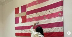 Ελληνική σημαία φτιαγμένη από κλινοσκεπάσματα και ροζ παρουσιάστηκε σε έκθεση στο Γενικό Προξενείο μας στη Νέα Υόρκη!