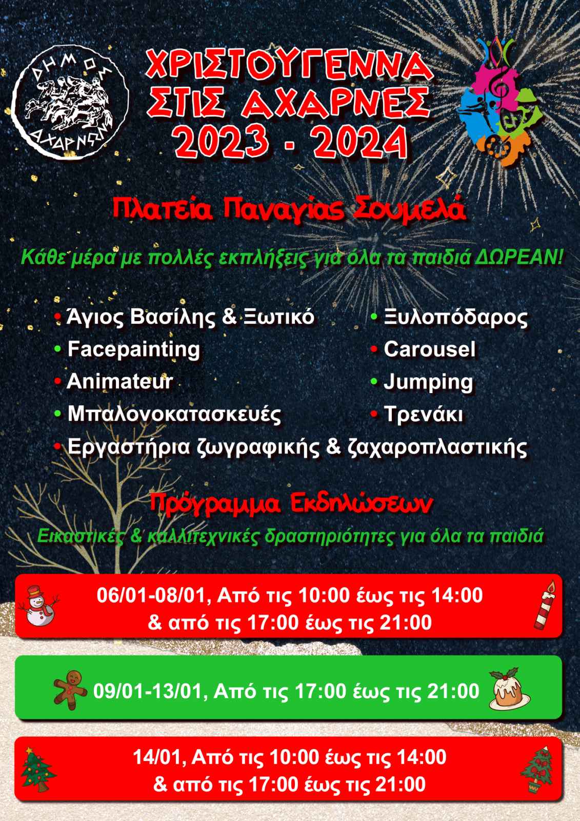 Χριστουγεννιάτικες δραστηριότητες στον προαύλιο χώρο της Παναγίας Σουμελά θα πραγματοποιήσει για άλλη μια χρονιά ο Δήμος Αχαρνών στο πλαίσιο των εορτασμών με το Ιουλιανό ημερολόγιο.