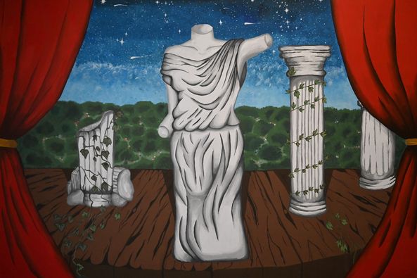 Η πρώτη με τίτλο α) «Το αρχαίο θέατρο συνομιλεί με το σύγχρονο» με τα αρχαία αγάλματα και τους κίονες με τον κισσό να παραπέμπει στη Διονυσιακή λατρεία και η δεύτερη με τίτλο β) «Εμπνεόμαστε δημιουργικά από το αρχαίο θέατρο» με πηγή έμπνευσης τα έργα των τριών μεγάλων τραγικών ποιητών.