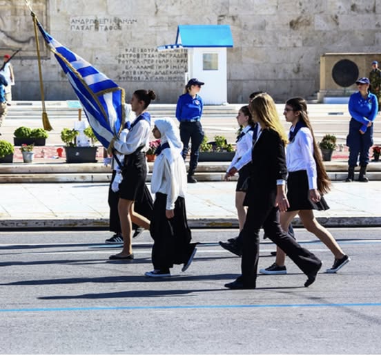 Η φωτογραφία αυτή πιστοποιεί την χρεοκοπία της Παιδείας και της Πολιτείας μας, συνολικά. Στη μέση η ελληνική σημαία, εκπροσωπώντας τα ιδανικά της ελευθερίας, της δημοκρατίας, του αλληλοσεβασμού, της ανεκτικότητας, της ισότιμης θέσης της γυναίκας στην κοινωνία, ενώ δεξιά και αριστερά την πλαισιώνουν παιδιά οικογενειών που επιμένουν στον ισλαμικό τους μεσαίωνα και οι γονείς τους τα υποχρεώνουν – να μην ακούσω κανέναν ηλίθιο να πει ότι είναι επιλογή τους – να ντύνονται σαν σκιάχτρα. Ήρθες στην Ευρώπη; Θα ζήσεις όπως εμείς. Αλλιώς, έφυγες με τη μία! Αν τα παιδιά σου θέλουν να απαλλαγούν από τον ισλαμοφασισμό και να μεγαλώσουν σαν φυσιολογικοί ελεύθεροι άνθρωποι, θα τα κρατήσουμε και θα σε ξαποστείλουμε χωρίς αυτά.