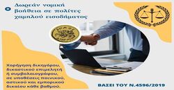 Παροχή δωρεάν νομικής βοήθειας σε πολίτες χαμηλού εισοδήματος (δηλαδή χορήγηση δικηγόρου, δικαστικού επιμελητή ) βάσει του Ν.4596/2019 Για περαιτέρω πληροφορίες…